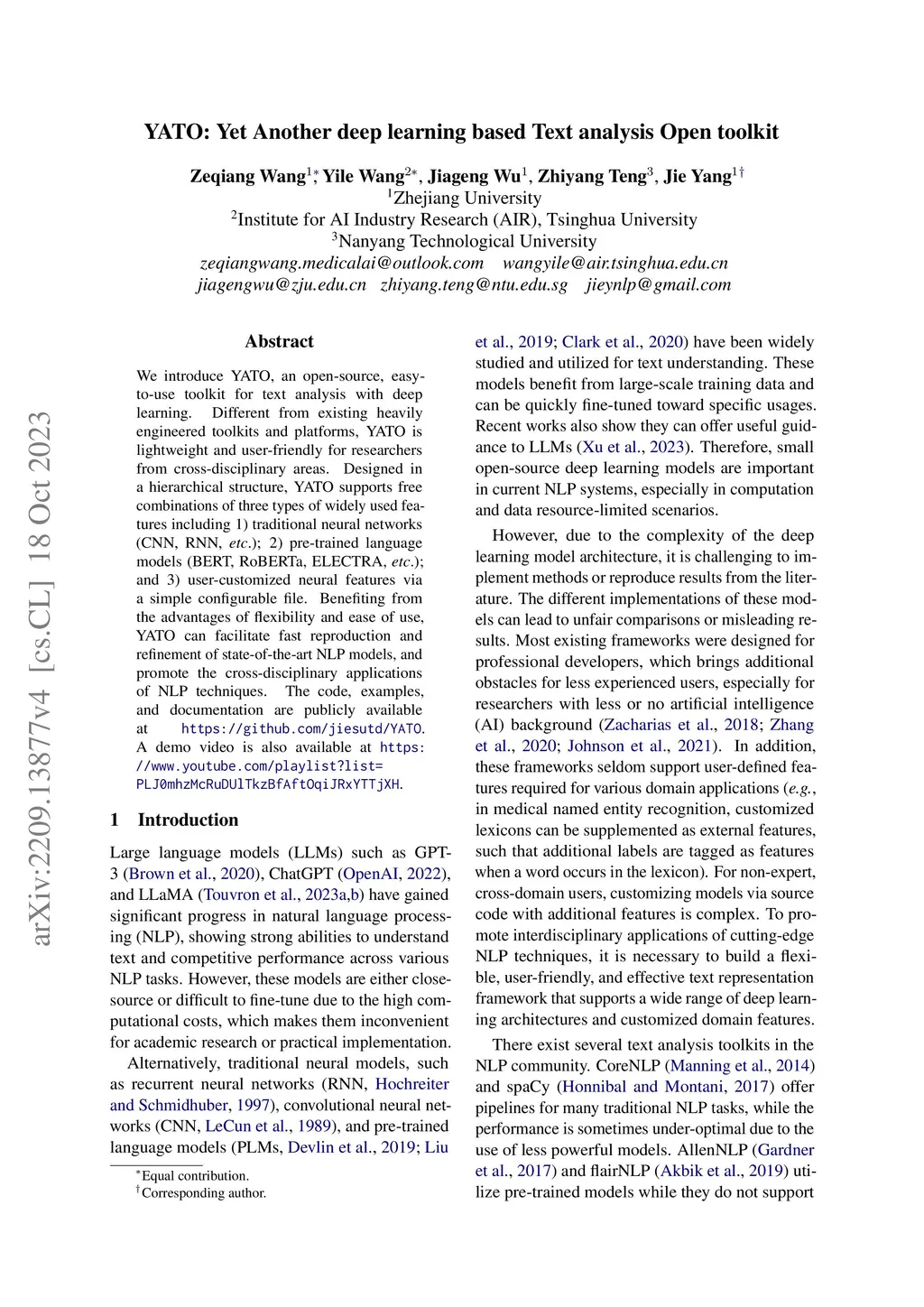YATO: Yet Another deep learning based Text analysis Open toolkit