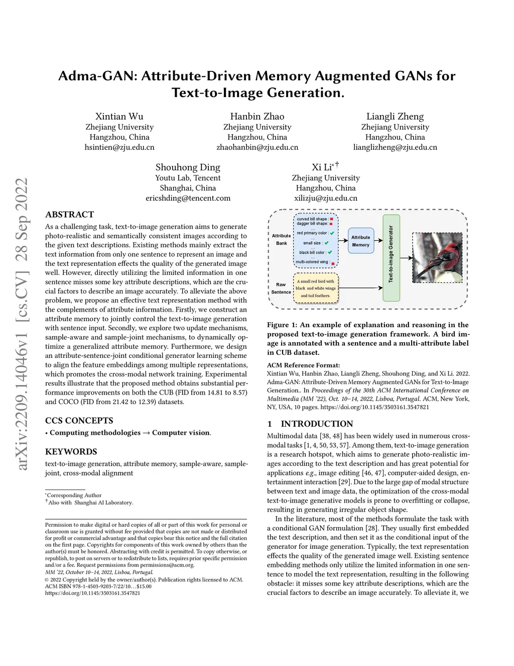 Adma-GAN: Attribute-Driven Memory Augmented GANs for Text-to-Image