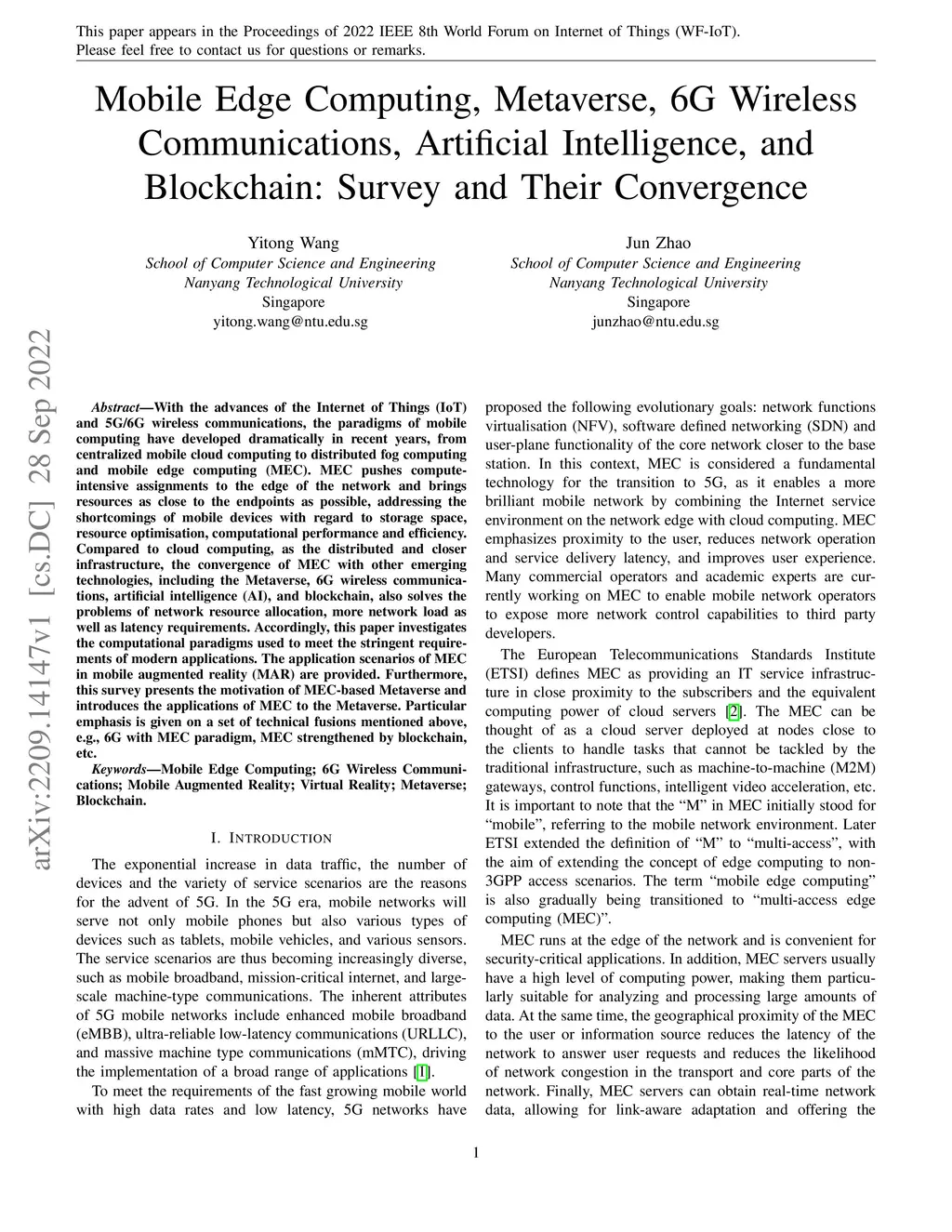 Mobile Edge Computing, Metaverse, 6G Wireless Communications, Artificial