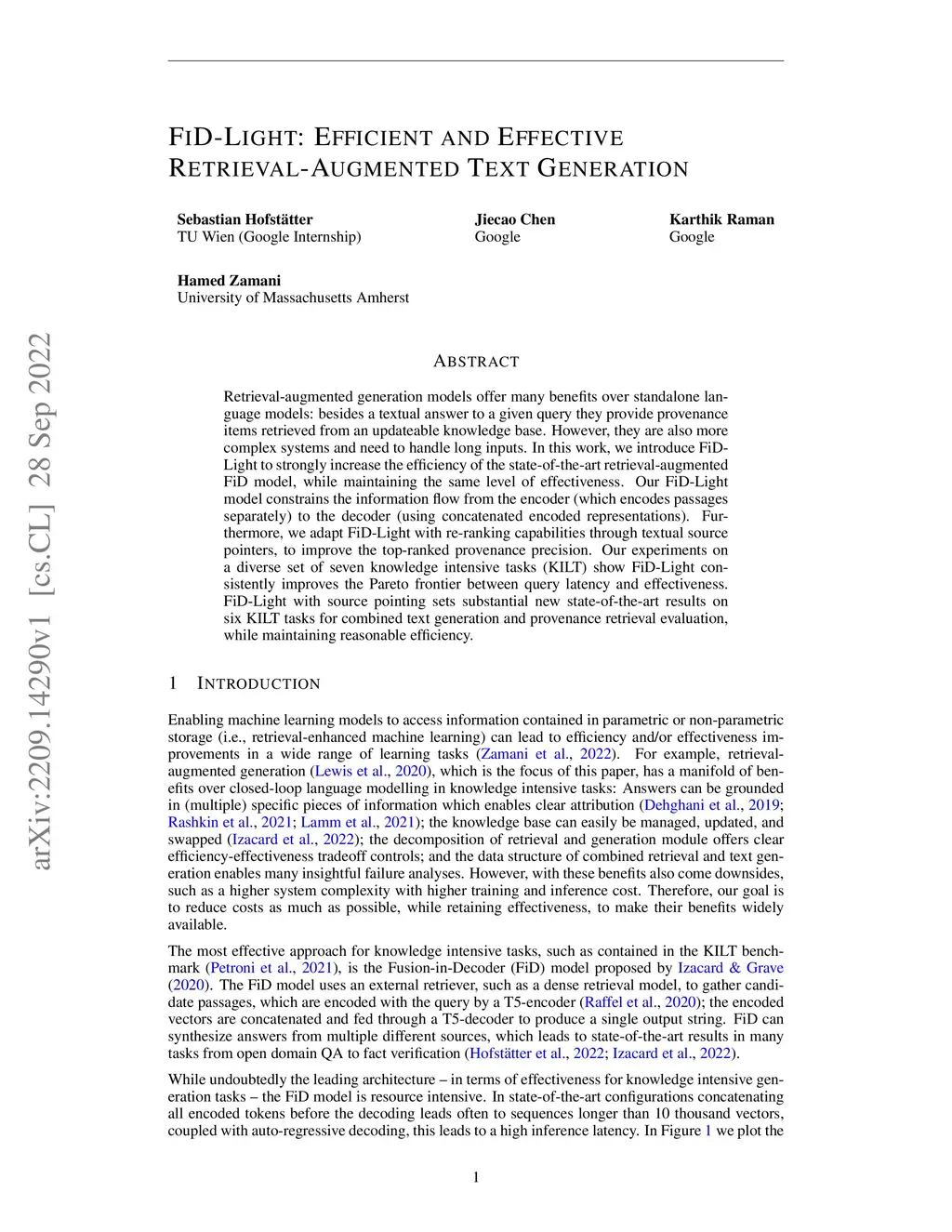FiD-Light: Efficient and Effective Retrieval-Augmented Text Generation