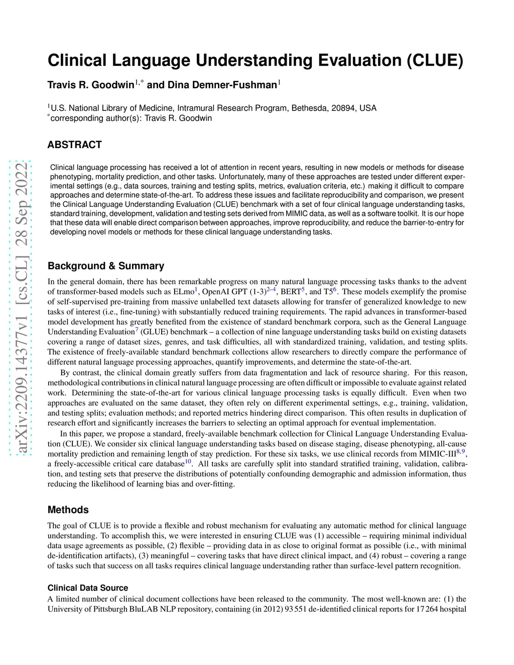 Clinical Language Understanding Evaluation (CLUE)