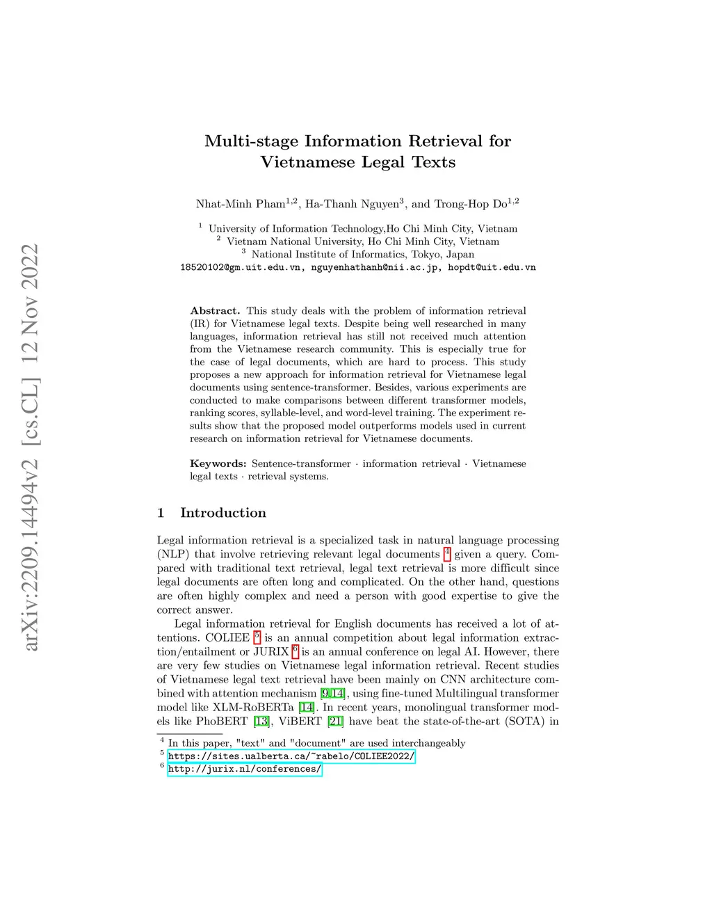 Multi-stage Information Retrieval for Vietnamese Legal Texts