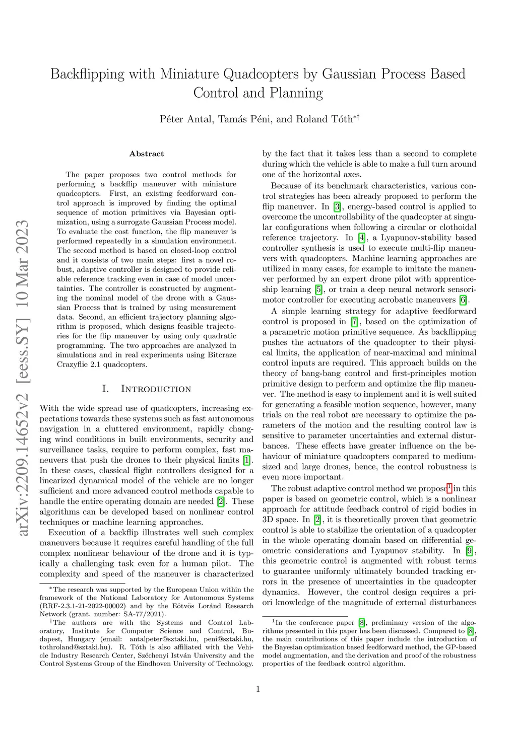 Backflipping with Miniature Quadcopters by Gaussian Process Based