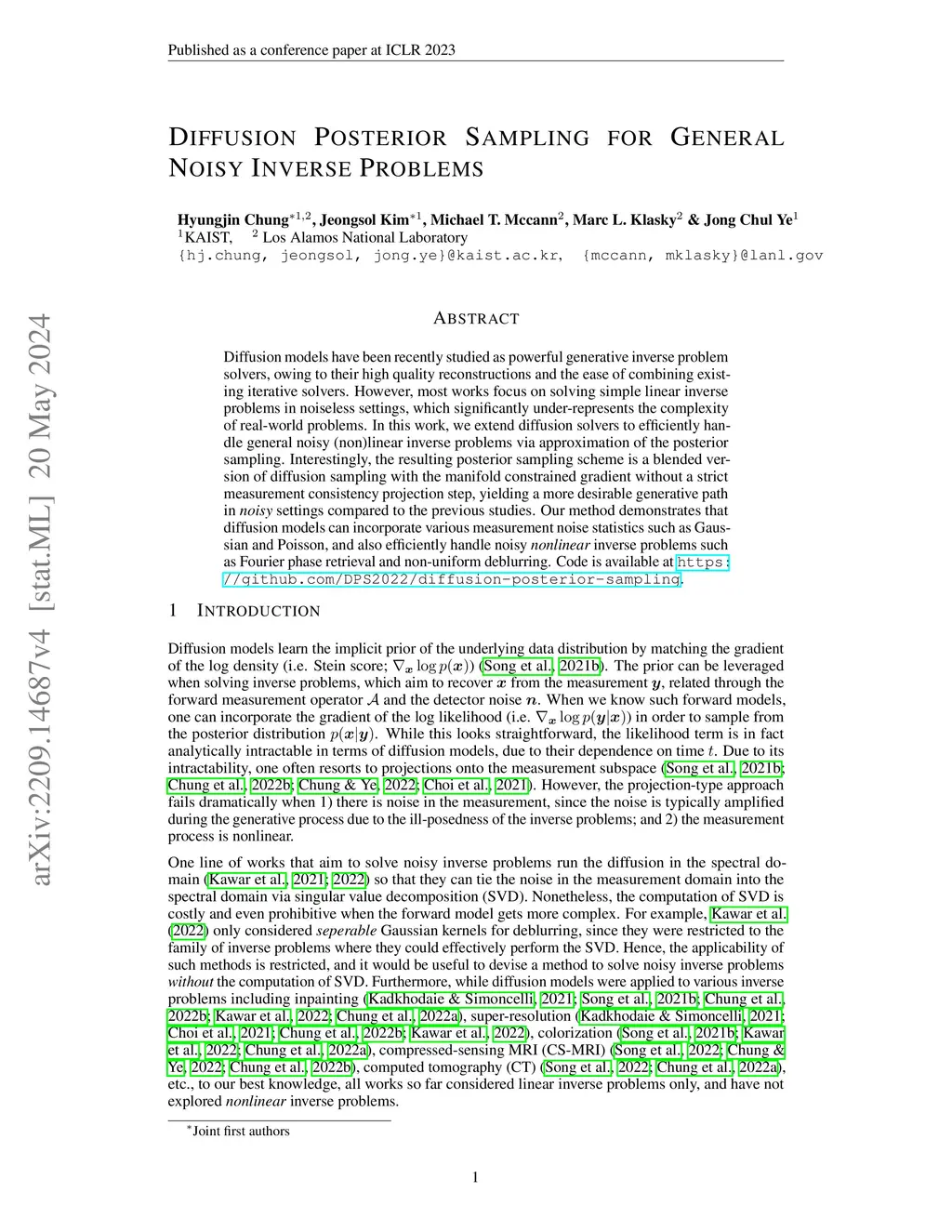 Diffusion Posterior Sampling for General Noisy Inverse Problems