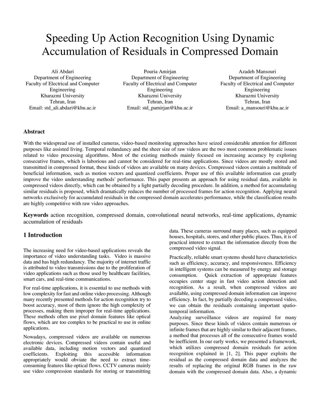 Speeding Up Action Recognition Using Dynamic Accumulation of Residuals