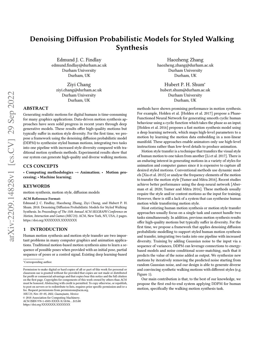Denoising Diffusion Probabilistic Models for Styled Walking Synthesis