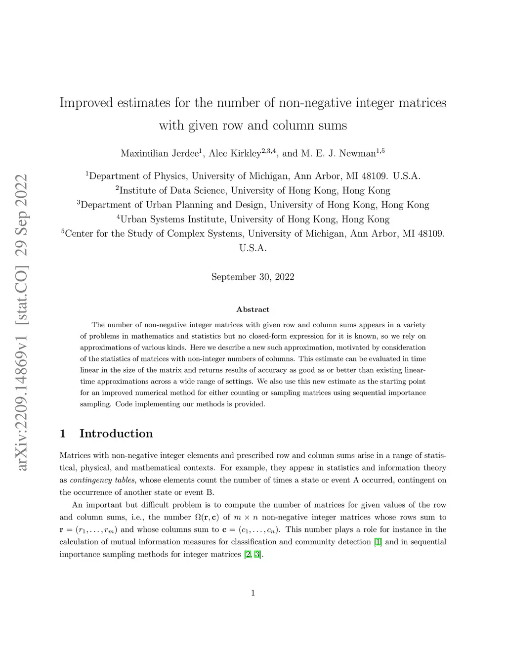 given row and column sums