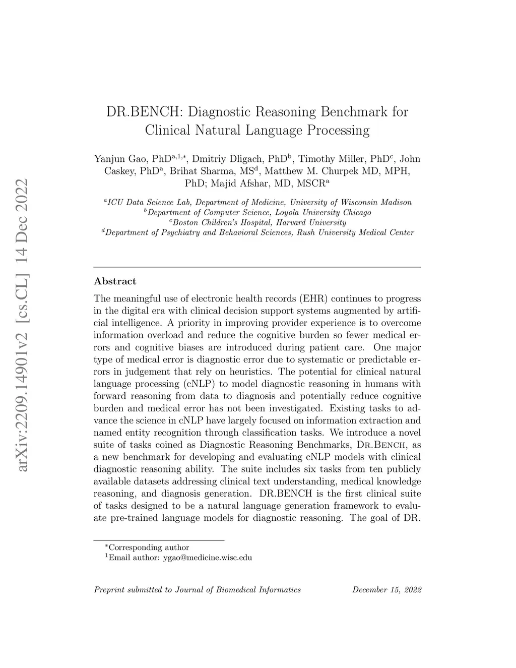 DR.BENCH: Diagnostic Reasoning Benchmark for Clinical Natural Language