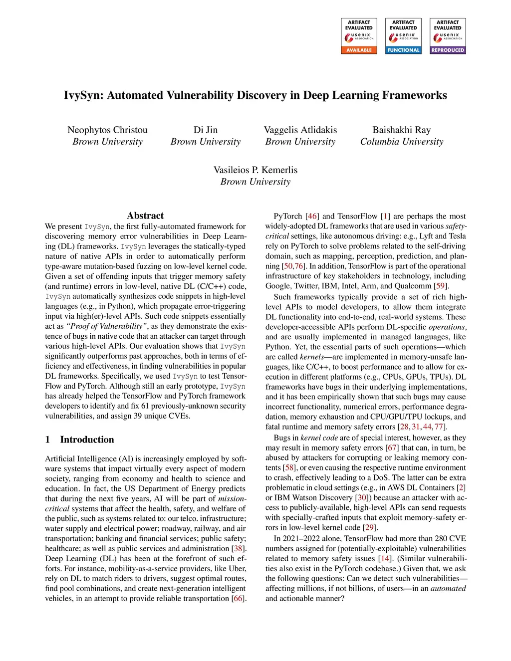 IvySyn: Automated Vulnerability Discovery in Deep Learning Frameworks