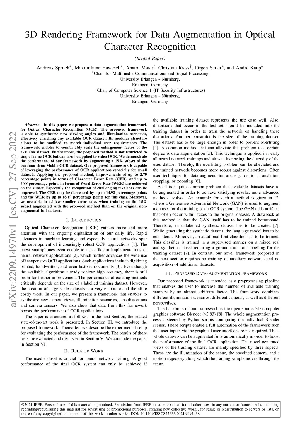 3D Rendering Framework for Data Augmentation in Optical Character