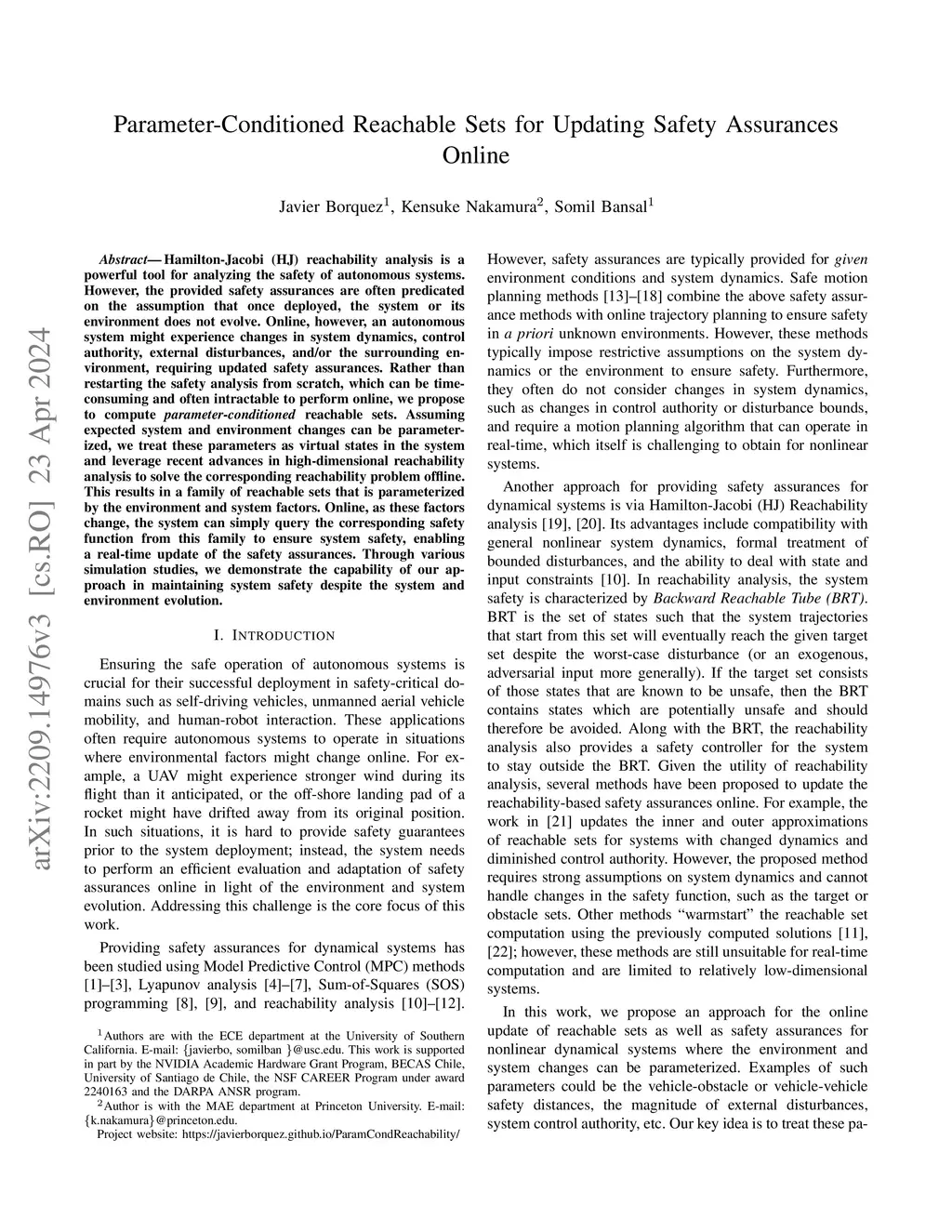 Hamilton-Jacobi (HJ) reachability analysis is a powerful tool for analyzing the safety of autonomous systems. However, the provided safety assurances are often predicated on the assumption that once deployed, the system or its environment does not evolve. Online, however, an autonomous system might experience changes in system dynamics, control authority, external disturbances, and/or the surrounding environment, requiring updated safety assurances. Rather than restarting the safety analysis from scratch, which can be time-consuming and often intractable to perform online, we propose to compute \textit{parameter-conditioned} reachable sets. Assuming expected system and environment changes can be parameterized, we treat these parameters as virtual states in the system and leverage recent advances in high-dimensional reachability analysis to solve the corresponding reachability problem offline. This results in a family of reachable sets that is parameterized by the environment and system factors. Online, as these factors change, the system can simply query the corresponding safety function from this family to ensure system safety, enabling a real-time update of the safety assurances. Through various simulation studies, we demonstrate the capability of our approach in maintaining system safety despite the system and environment evolution.