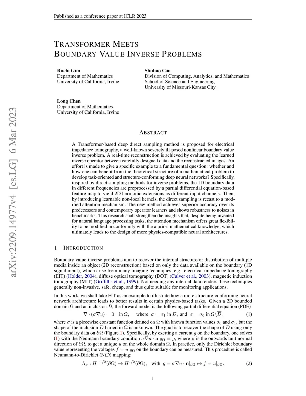 A Transformer-based deep direct sampling method is proposed for electrical impedance tomography, a well-known severely ill-posed nonlinear boundary value inverse problem. A real-time reconstruction is achieved by evaluating the learned inverse operator between carefully designed data and the reconstructed images. An effort is made to give a specific example to a fundamental question: whether and how one can benefit from the theoretical structure of a mathematical problem to develop task-oriented and structure-conforming deep neural networks? Specifically, inspired by direct sampling methods for inverse problems, the 1D boundary data in different frequencies are preprocessed by a partial differential equation-based feature map to yield 2D harmonic extensions as different input channels. Then, by introducing learnable non-local kernels, the direct sampling is recast to a modified attention mechanism. The new method achieves superior accuracy over its predecessors and contemporary operator learners and shows robustness to noises in benchmarks. This research shall strengthen the insights that, despite being invented for natural language processing tasks, the attention mechanism offers great flexibility to be modified in conformity with the a priori mathematical knowledge, which ultimately leads to the design of more physics-compatible neural architectures.