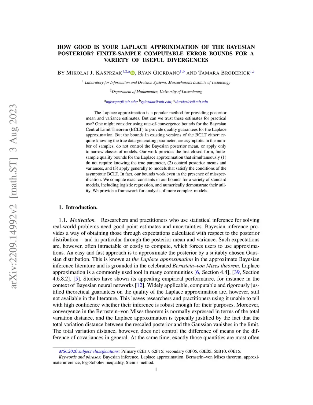 The Laplace approximation is a popular method for providing posterior mean and variance estimates. But can we trust these estimates for practical use? One might consider using rate-of-convergence bounds for the Bayesian Central Limit Theorem (BCLT) to provide quality guarantees for the Laplace approximation. But the bounds in existing versions of the BCLT either: require knowing the true data-generating parameter, are asymptotic in the number of samples, do not control the Bayesian posterior mean, or apply only to narrow classes of models. Our work provides the first closed-form, finite-sample quality bounds for the Laplace approximation that simultaneously (1) do not require knowing the true parameter, (2) control posterior means and variances, and (3) apply generally to models that satisfy the conditions of the asymptotic BCLT. In fact, our bounds work even in the presence of misspecification. We compute exact constants in our bounds for a variety of standard models, including logistic regression, and numerically demonstrate their utility. We provide a framework for analysis of more complex models.