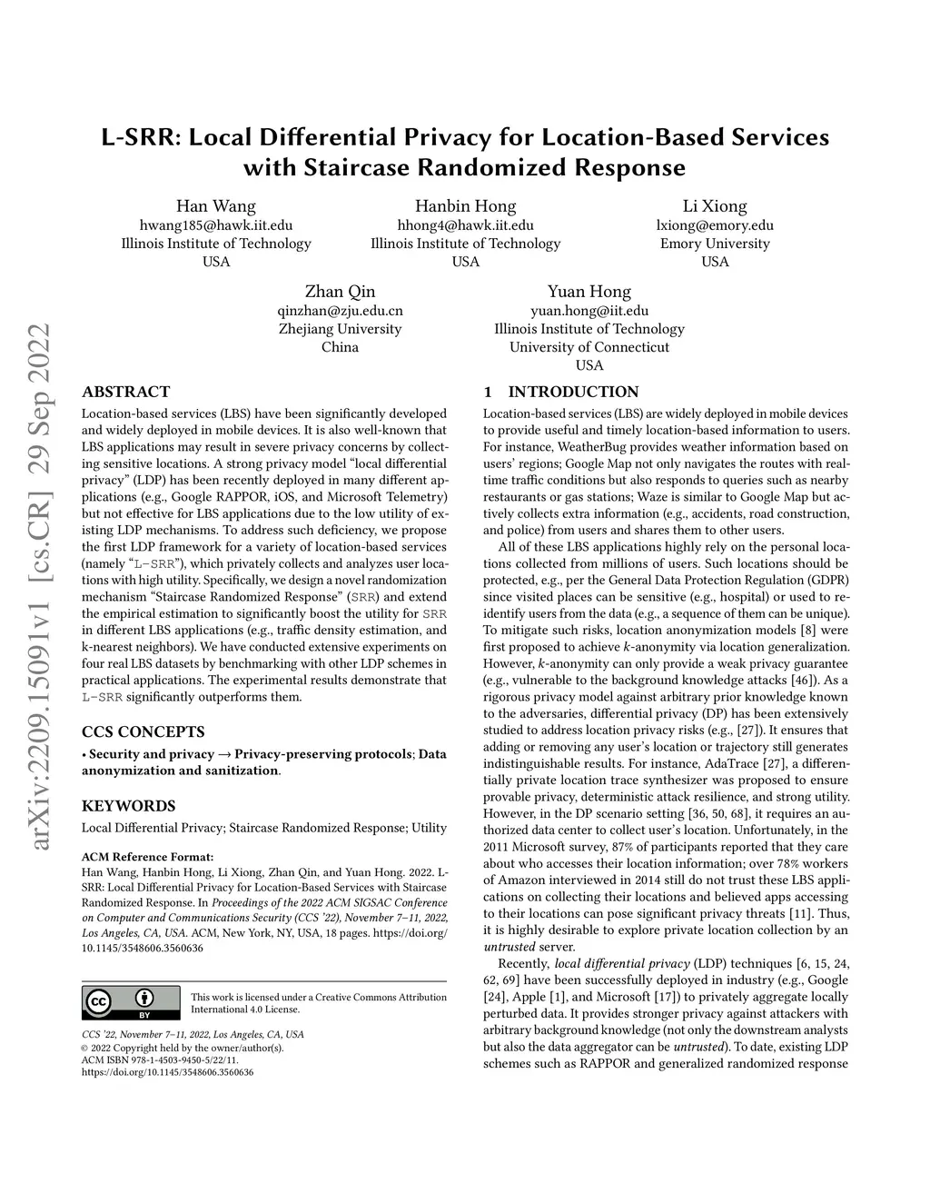 L-SRR: Local Differential Privacy for Location-Based Services with