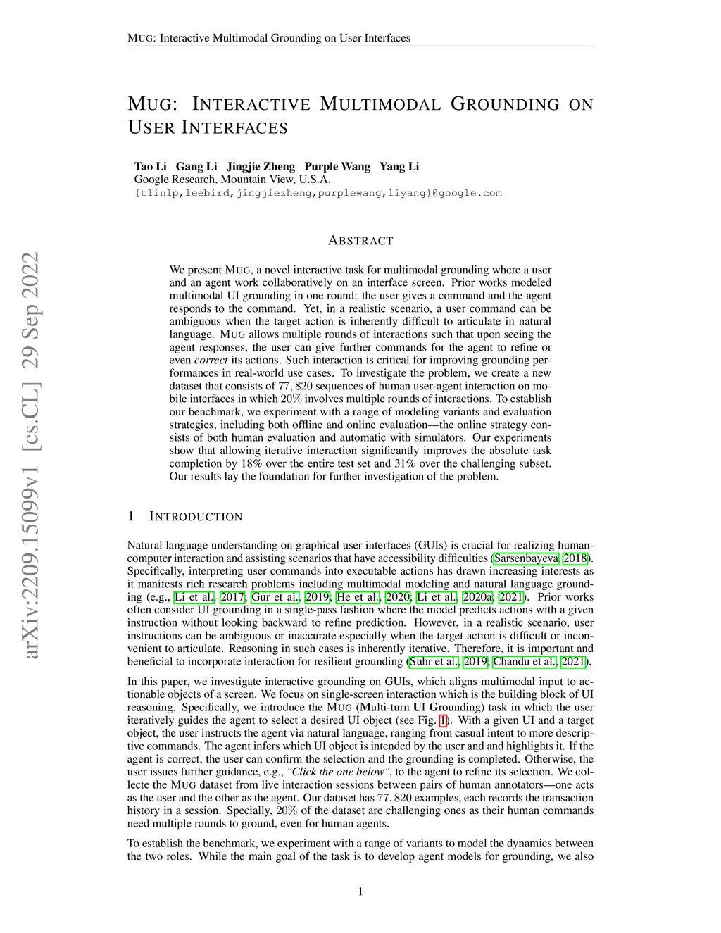 MUG: Interactive Multimodal Grounding on User Interfaces