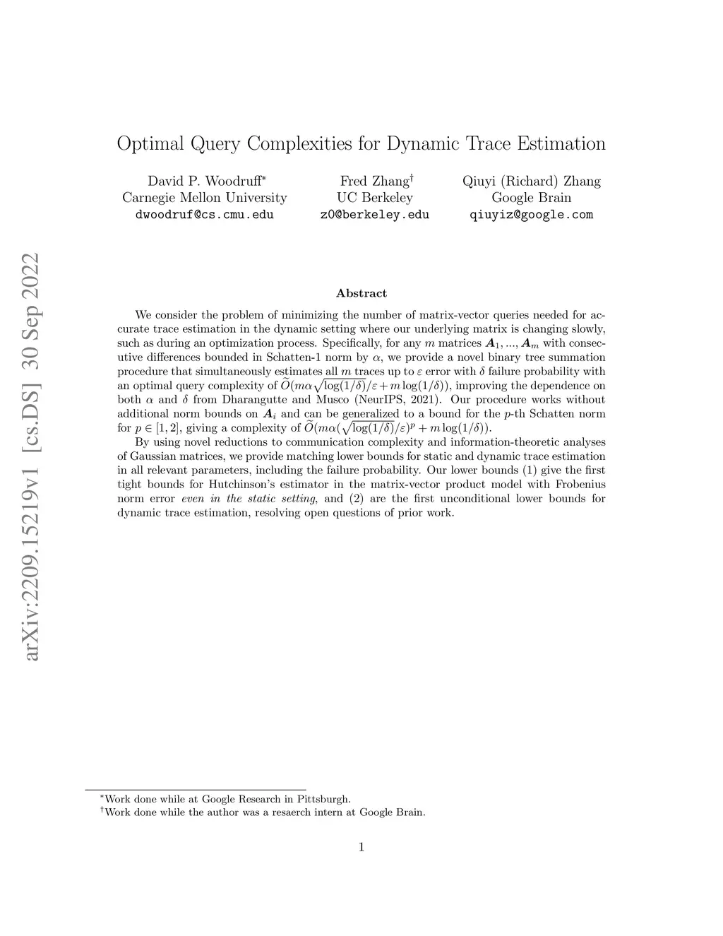 Optimal Query Complexities for Dynamic Trace Estimation