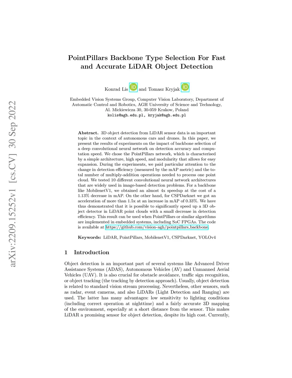 PointPillars Backbone Type Selection For Fast and Accurate LiDAR Object