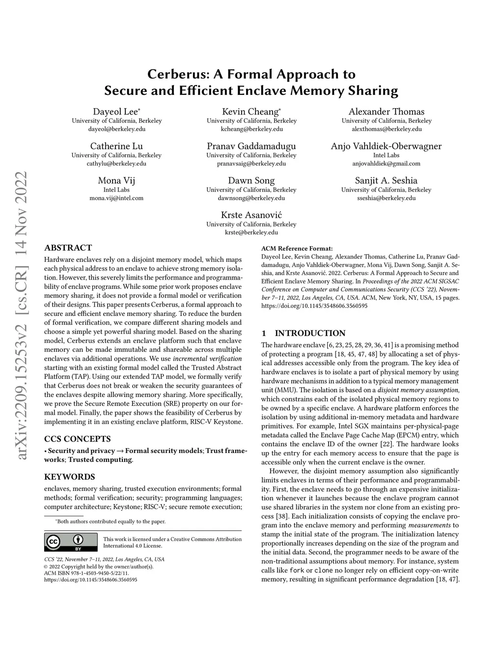 Cerberus: A Formal Approach to Secure and Efficient Enclave Memory