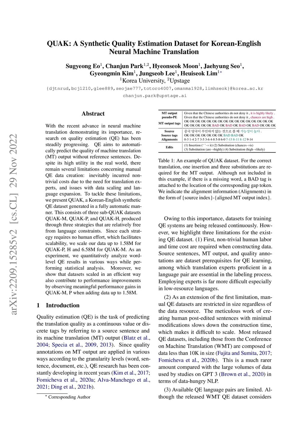 QUAK: A Synthetic Quality Estimation Dataset for Korean-English Neural