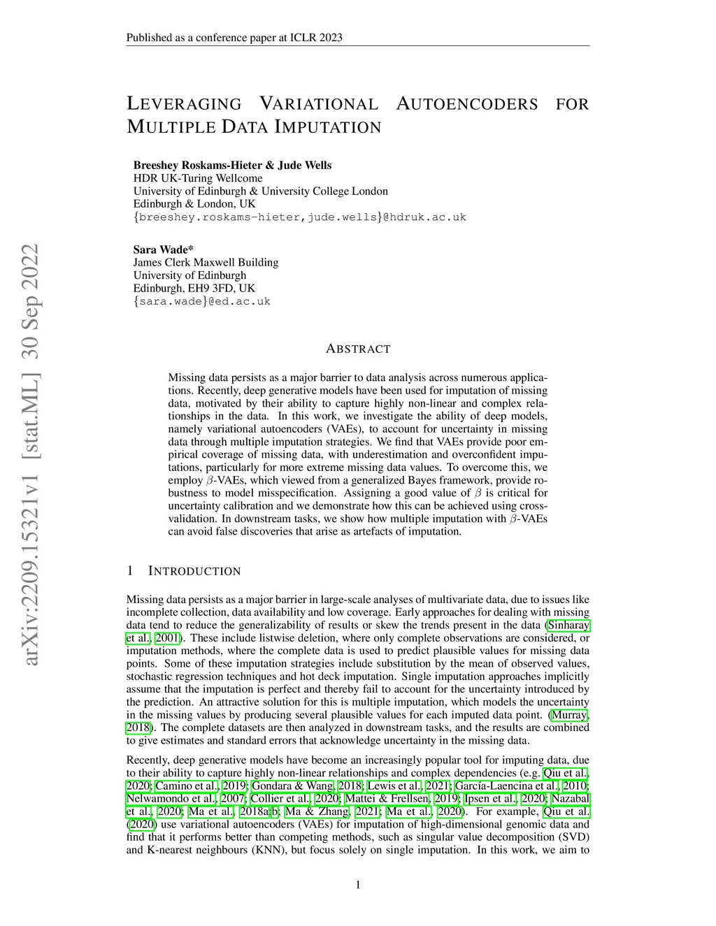 Leveraging variational autoencoders for multiple data imputation