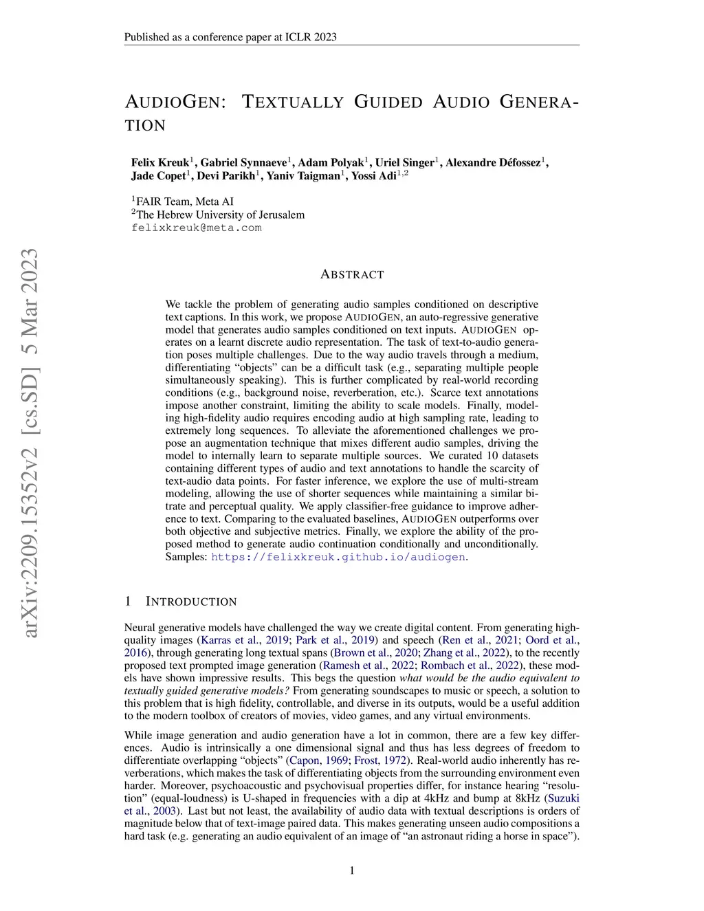 AudioGen: Textually Guided Audio Generation