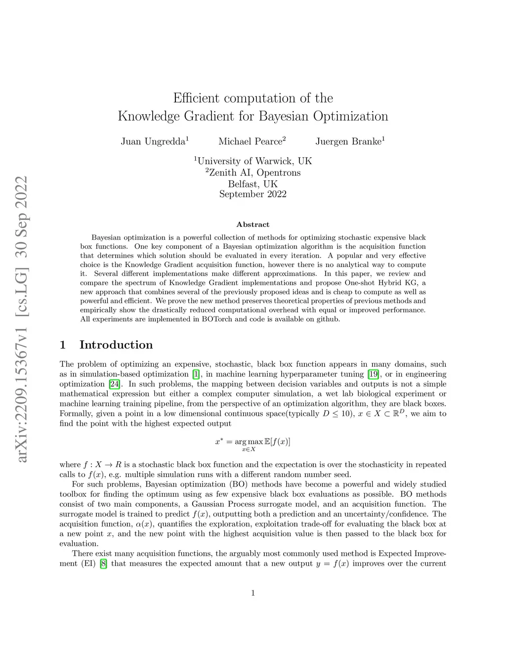 Efficient computation of the Knowledge Gradient for Bayesian