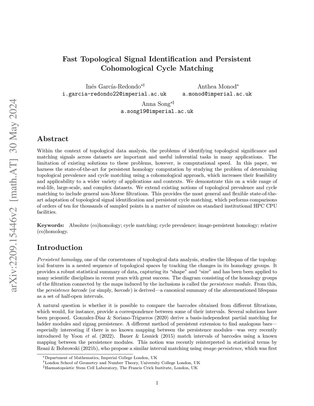 Within the context of topological data analysis, the problems of identifying topological significance and matching signals across datasets are important and useful inferential tasks in many applications. The limitation of existing solutions to these problems, however, is computational speed. In this paper, we harness the state-of-the-art for persistent homology computation by studying the problem of determining topological prevalence and cycle matching using a cohomological approach, which increases their feasibility and applicability to a wider variety of applications and contexts. We demonstrate this on a wide range of real-life, large-scale, and complex datasets. We extend existing notions of topological prevalence and cycle matching to include general non-Morse filtrations. This provides the most general and flexible state-of-the-art adaptation of topological signal identification and persistent cycle matching, which performs comparisons of orders of ten for thousands of sampled points in a matter of minutes on standard institutional HPC CPU facilities.