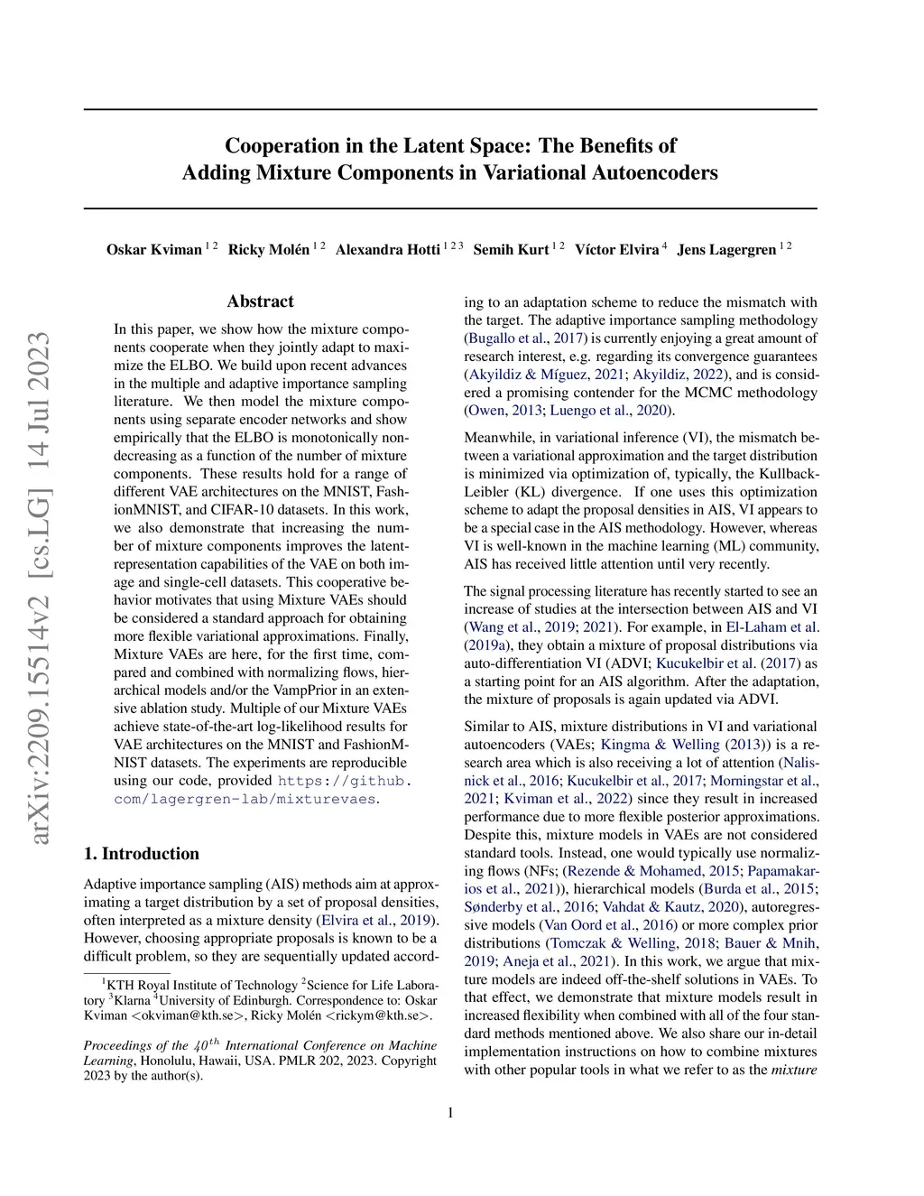 In this paper, we show how the mixture components cooperate when they jointly adapt to maximize the ELBO. We build upon recent advances in the multiple and adaptive importance sampling literature. We then model the mixture components using separate encoder networks and show empirically that the ELBO is monotonically non-decreasing as a function of the number of mixture components. These results hold for a range of different VAE architectures on the MNIST, FashionMNIST, and CIFAR-10 datasets. In this work, we also demonstrate that increasing the number of mixture components improves the latent-representation capabilities of the VAE on both image and single-cell datasets. This cooperative behavior motivates that using Mixture VAEs should be considered a standard approach for obtaining more flexible variational approximations. Finally, Mixture VAEs are here, for the first time, compared and combined with normalizing flows, hierarchical models and/or the VampPrior in an extensive ablation study. Multiple of our Mixture VAEs achieve state-of-the-art log-likelihood results for VAE architectures on the MNIST and FashionMNIST datasets. The experiments are reproducible using our code, provided here: https://github.com/lagergren-lab/mixturevaes.