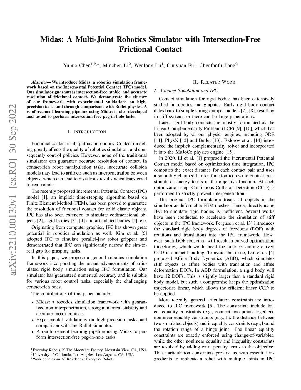 Midas: A Multi-Joint Robotics Simulator with Intersection-Free