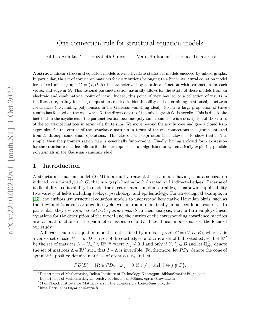 Linear structural equation models are multivariate statistical models encoded by mixed graphs. In particular, the set of covariance matrices for distributions belonging to a linear structural equation model for a fixed mixed graph is parameterized by a rational function with parameters for each vertex and edge in . This rational parametrization naturally allows for the study of these models from an algebraic and combinatorial point of view. Indeed, this point of view has led to a collection of results in the literature, mainly focusing on questions related to identifiability and determining relationships between covariances (i.e., finding polynomials in the Gaussian vanishing ideal). So far, a large proportion of these results has focused on the case when , the directed part of the mixed graph , is acyclic. This is due to the fact that in the acyclic case, the parametrization becomes polynomial and there is a description of the entries of the covariance matrices in terms of a finite sum. We move beyond the acyclic case and give a closed form expression for the entries of the covariance matrices in terms of the one-connections in a graph obtained from through some small operations. This closed form expression then allows us to show that if is simple, then the parametrization map is generically finite-to-one. Finally, having a closed form expression for the covariance matrices allows for the development of an algorithm for systematically exploring possible polynomials in the Gaussian vanishing ideal.