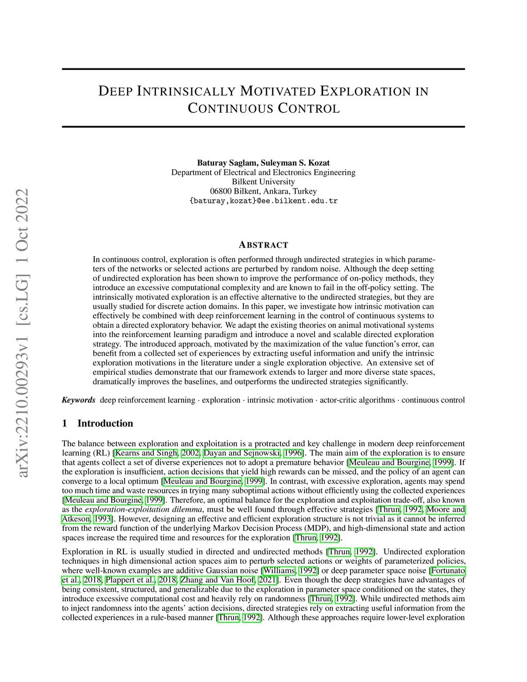 Deep Intrinsically Motivated Exploration in Continuous Control