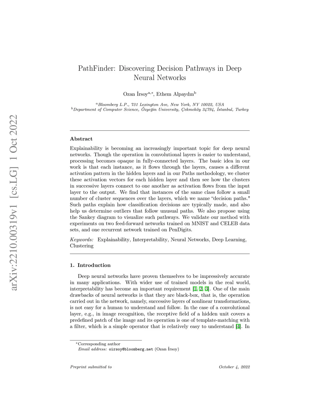 Explainability is becoming an increasingly important topic for deep neural networks. Though the operation in convolutional layers is easier to understand, processing becomes opaque in fully-connected layers. The basic idea in our work is that each instance, as it flows through the layers, causes a different activation pattern in the hidden layers and in our Paths methodology, we cluster these activation vectors for each hidden layer and then see how the clusters in successive layers connect to one another as activation flows from the input layer to the output. We find that instances of the same class follow a small number of cluster sequences over the layers, which we name ``decision paths." Such paths explain how classification decisions are typically made, and also help us determine outliers that follow unusual paths. We also propose using the Sankey diagram to visualize such pathways. We validate our method with experiments on two feed-forward networks trained on MNIST and CELEB data sets, and one recurrent network trained on PenDigits.