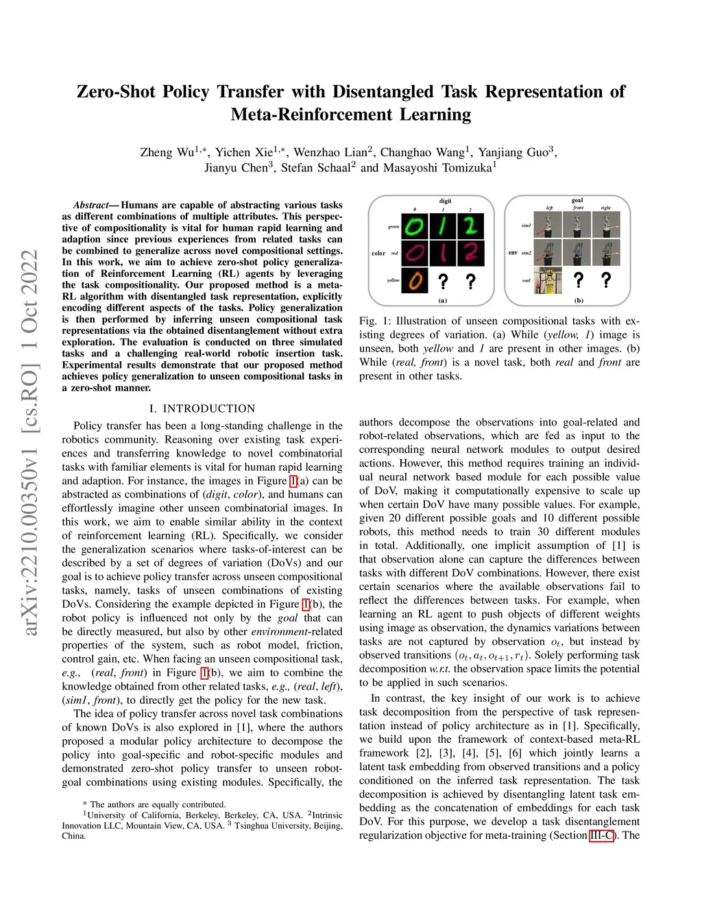 Zero-Shot Policy Transfer with Disentangled Task Representation of