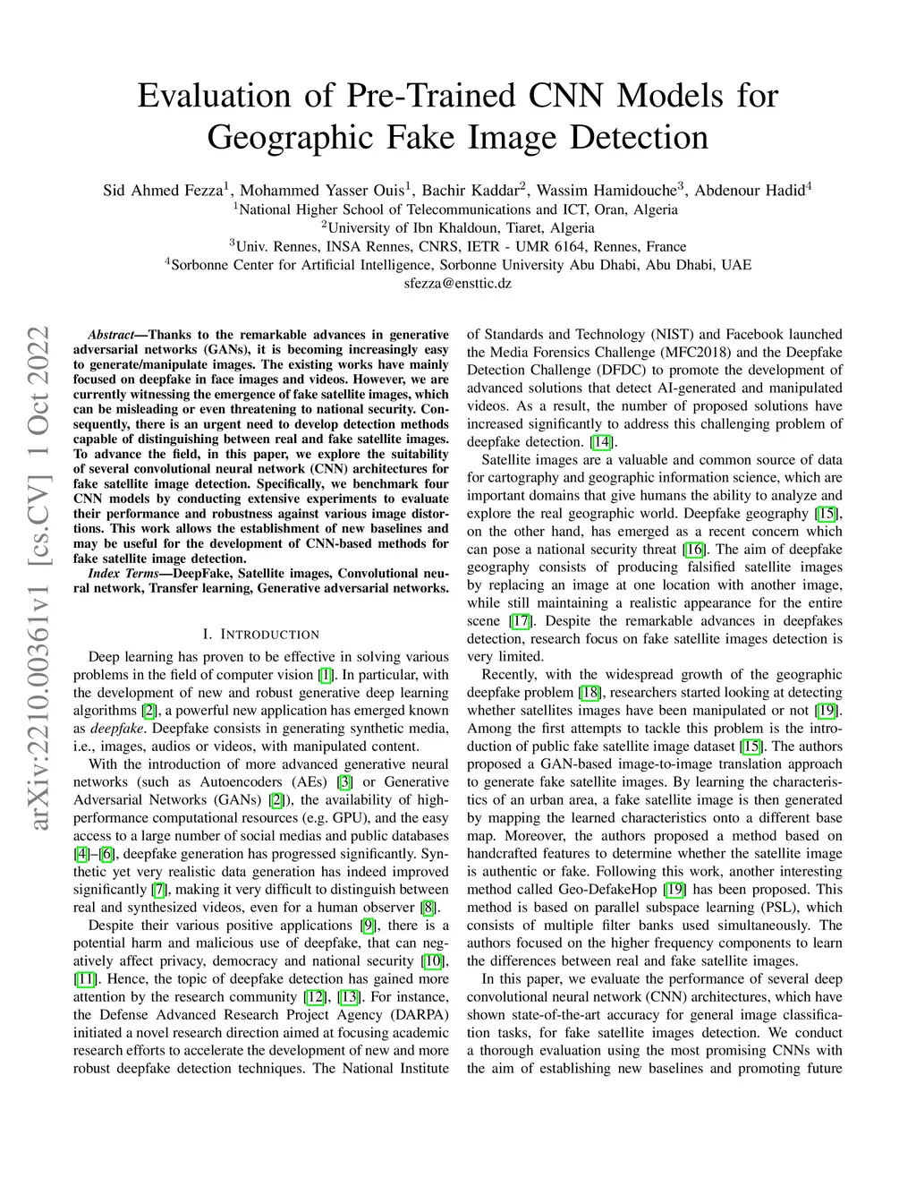 Evaluation of Pre-Trained CNN Models for Geographic Fake Image Detection