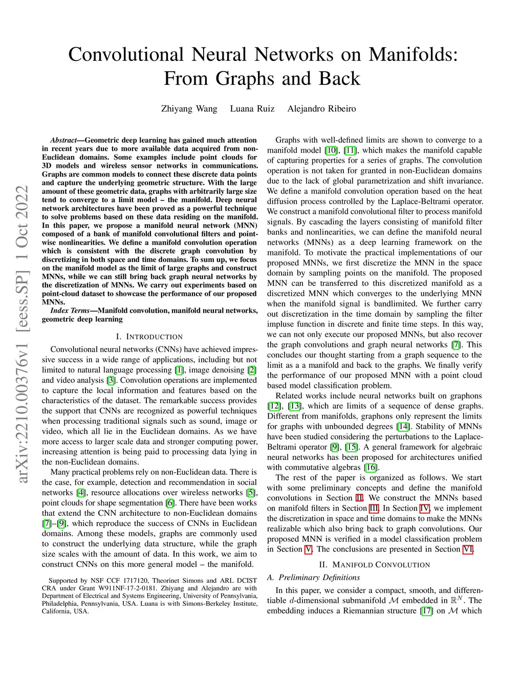 Convolutional Neural Networks on Manifolds: From Graphs and Back
