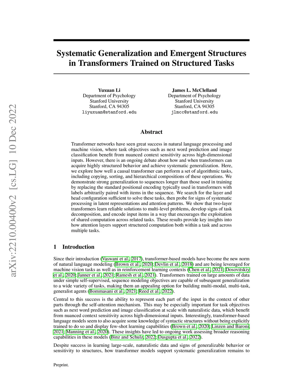 Systematic Generalization and Emergent Structures in Transformers
