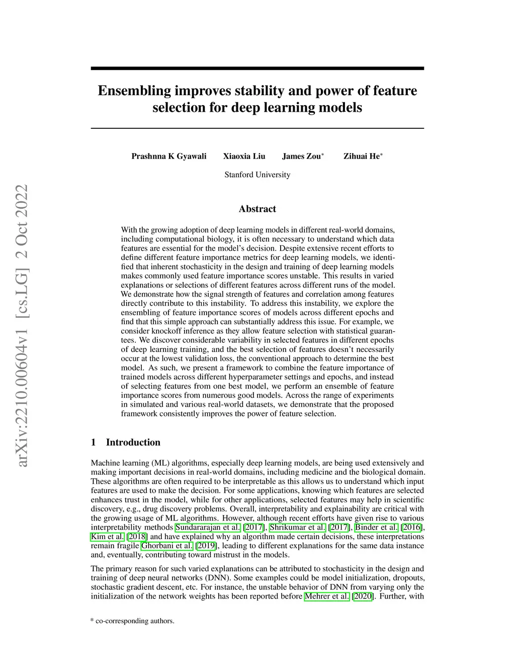 Ensembling improves stability and power of feature selection for deep