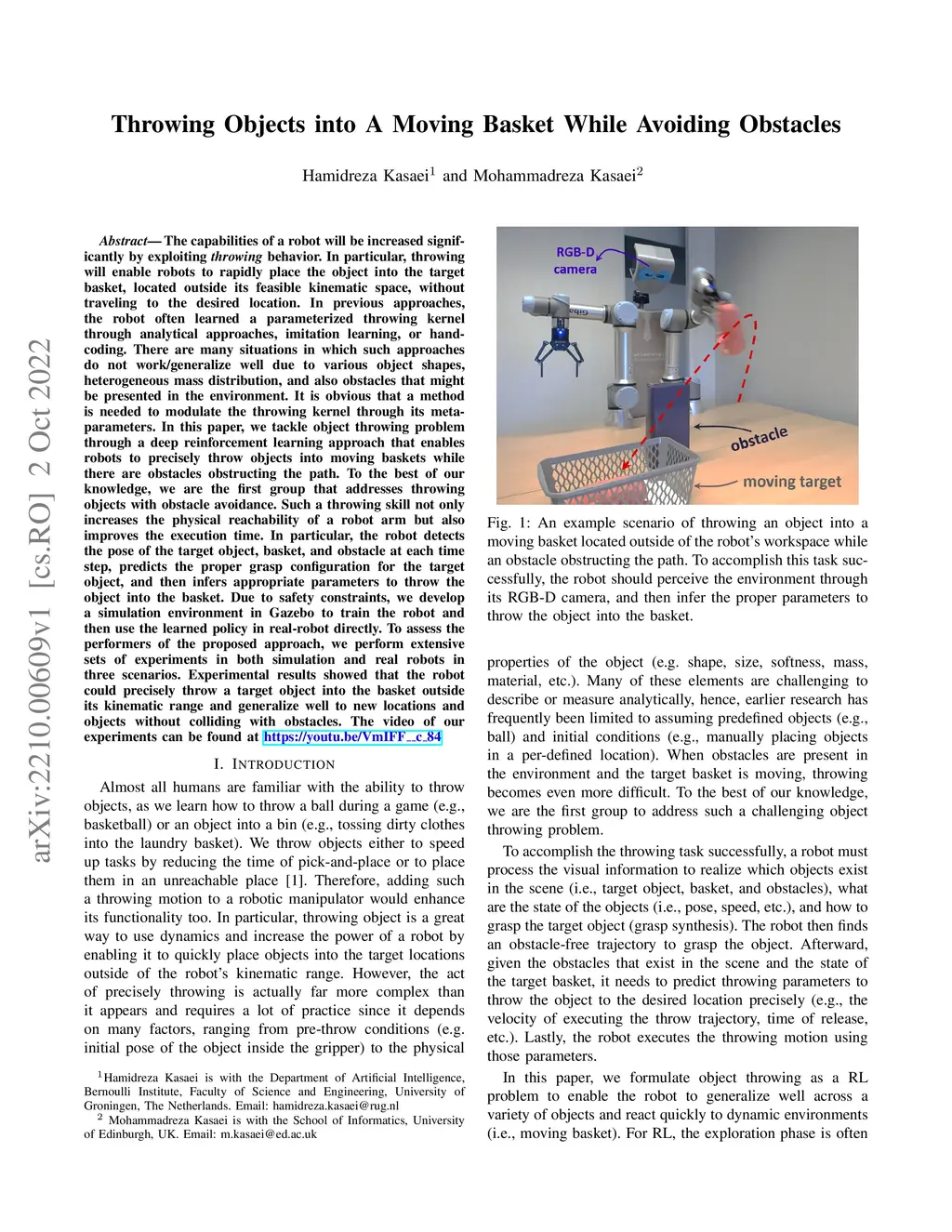 Throwing Objects into A Moving Basket While Avoiding Obstacles