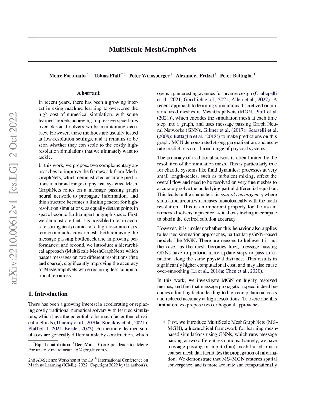 In recent years, there has been a growing interest in using machine learning to overcome the high cost of numerical simulation, with some learned models achieving impressive speed-ups over classical solvers whilst maintaining accuracy. However, these methods are usually tested at low-resolution settings, and it remains to be seen whether they can scale to the costly high-resolution simulations that we ultimately want to tackle. In this work, we propose two complementary approaches to improve the framework from MeshGraphNets, which demonstrated accurate predictions in a broad range of physical systems. MeshGraphNets relies on a message passing graph neural network to propagate information, and this structure becomes a limiting factor for high-resolution simulations, as equally distant points in space become further apart in graph space. First, we demonstrate that it is possible to learn accurate surrogate dynamics of a high-resolution system on a much coarser mesh, both removing the message passing bottleneck and improving performance; and second, we introduce a hierarchical approach (MultiScale MeshGraphNets) which passes messages on two different resolutions (fine and coarse), significantly improving the accuracy of MeshGraphNets while requiring less computational resources.