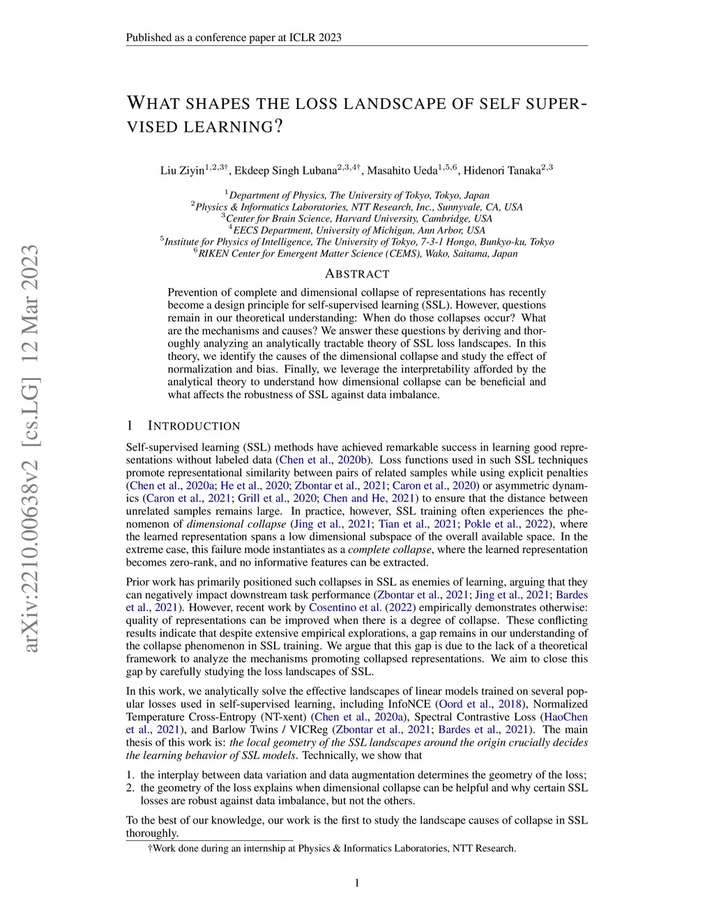 What shapes the loss landscape of self-supervised learning?
