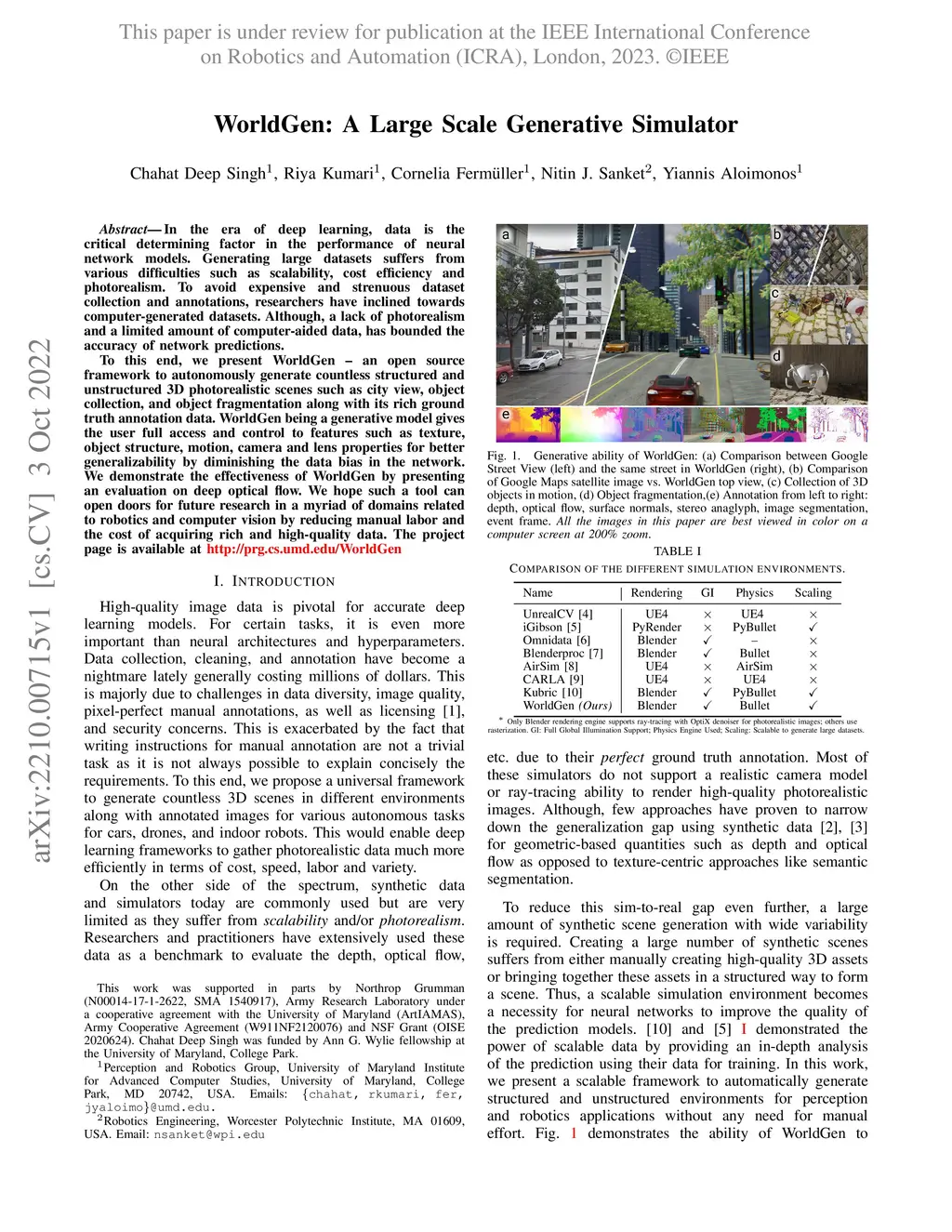 In the era of deep learning, data is the critical determining factor in the performance of neural network models. Generating large datasets suffers from various difficulties such as scalability, cost efficiency and photorealism. To avoid expensive and strenuous dataset collection and annotations, researchers have inclined towards computer-generated datasets. Although, a lack of photorealism and a limited amount of computer-aided data, has bounded the accuracy of network predictions. To this end, we present WorldGen -- an open source framework to autonomously generate countless structured and unstructured 3D photorealistic scenes such as city view, object collection, and object fragmentation along with its rich ground truth annotation data. WorldGen being a generative model gives the user full access and control to features such as texture, object structure, motion, camera and lens properties for better generalizability by diminishing the data bias in the network. We demonstrate the effectiveness of WorldGen by presenting an evaluation on deep optical flow. We hope such a tool can open doors for future research in a myriad of domains related to robotics and computer vision by reducing manual labor and the cost of acquiring rich and high-quality data.
