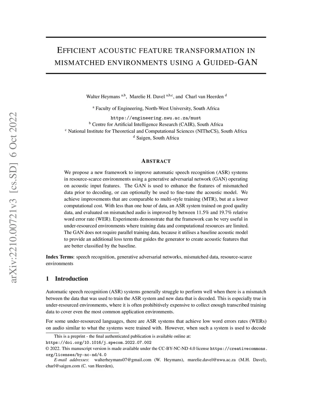Efficient acoustic feature transformation in mismatched environments