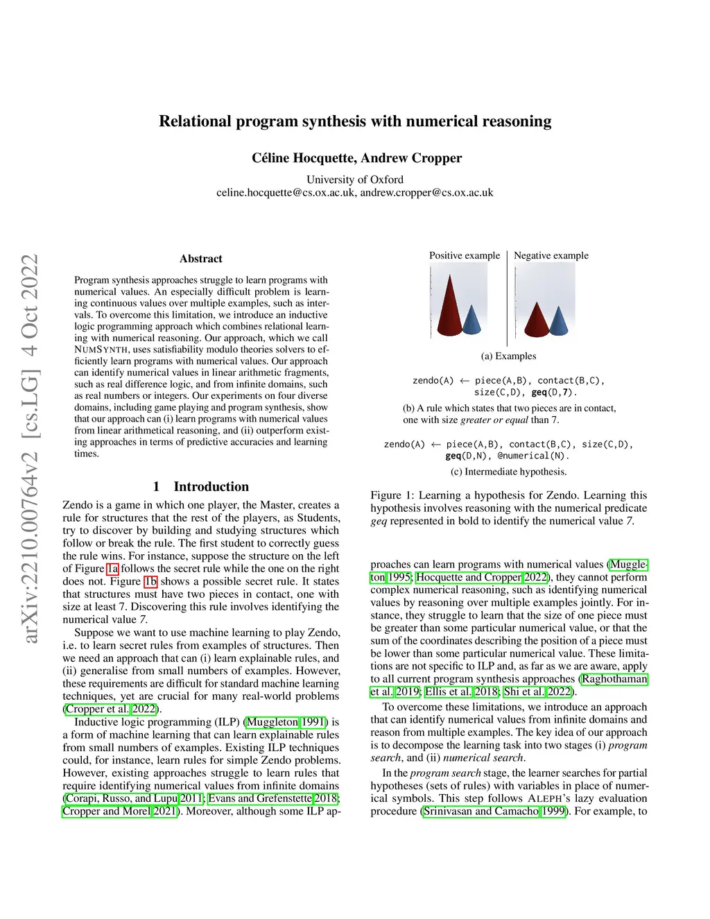 Relational program synthesis with numerical reasoning
