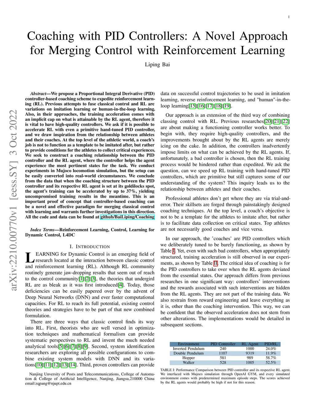 We propose a Proportional Integral Derivative (PID) controller-based coaching scheme to expedite reinforcement learning (RL).