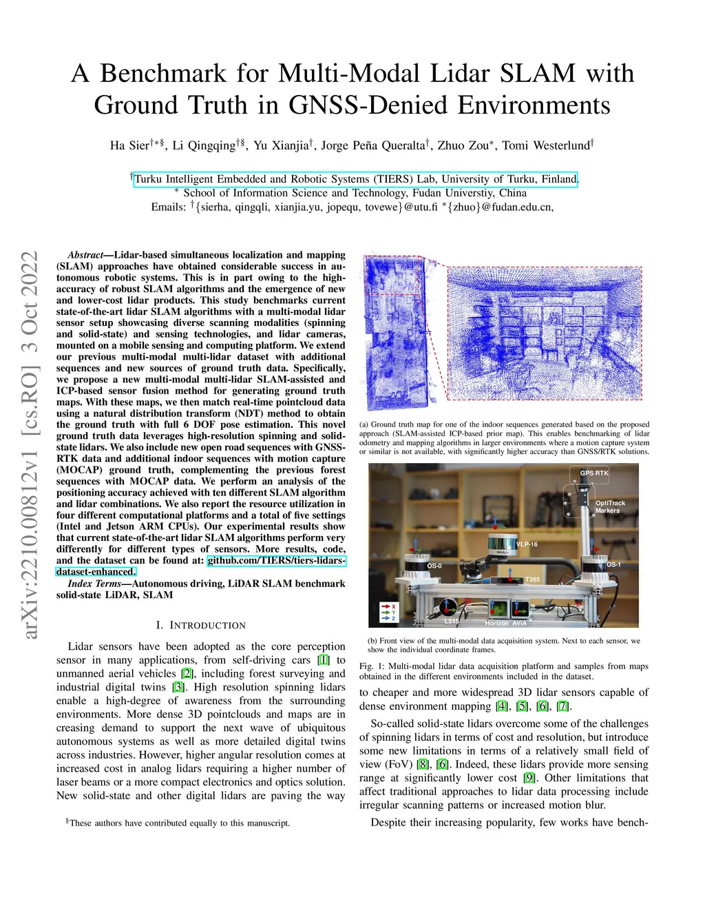 A Benchmark for Multi-Modal Lidar SLAM with Ground Truth in GNSS-Denied