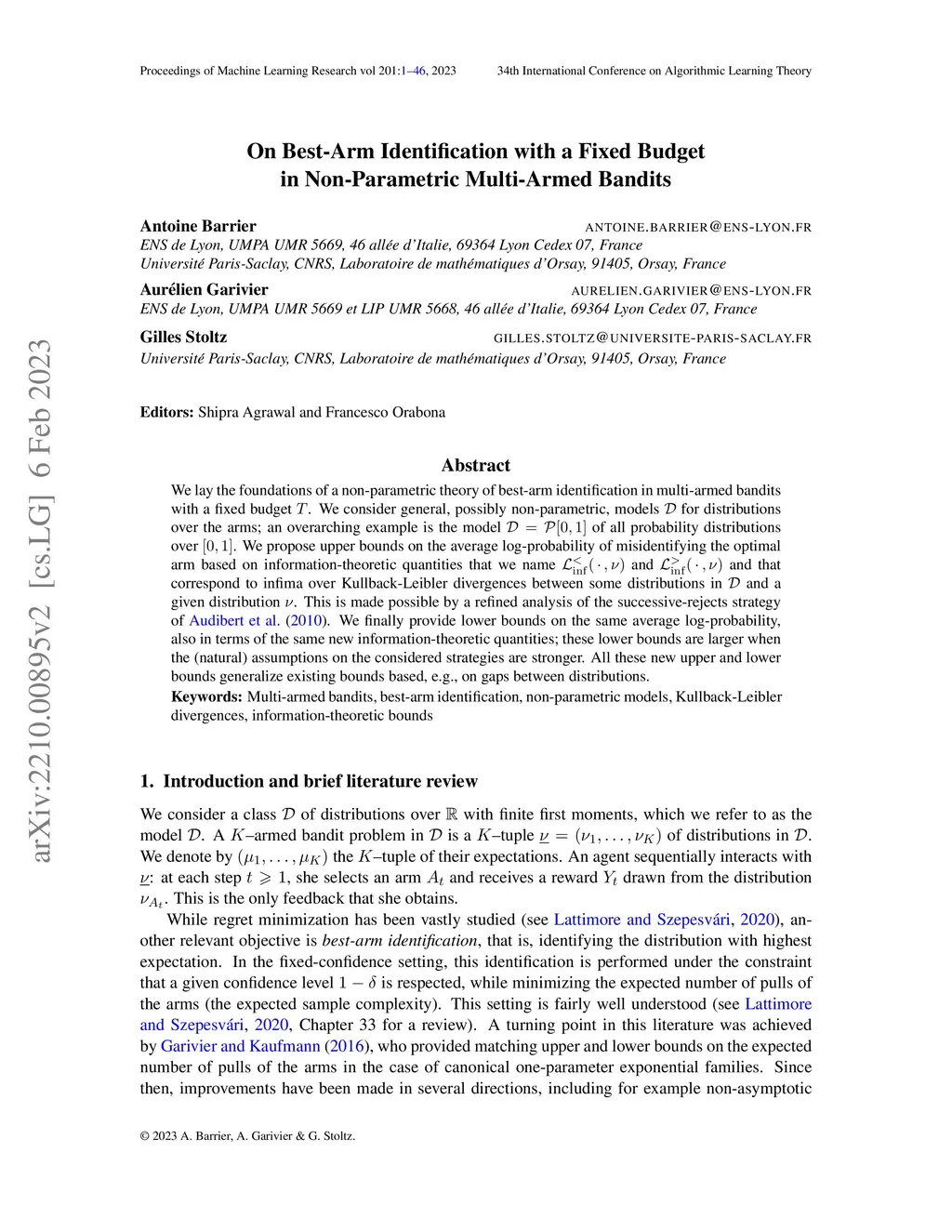 On Best-Arm Identification with a Fixed Budget in Non-Parametric