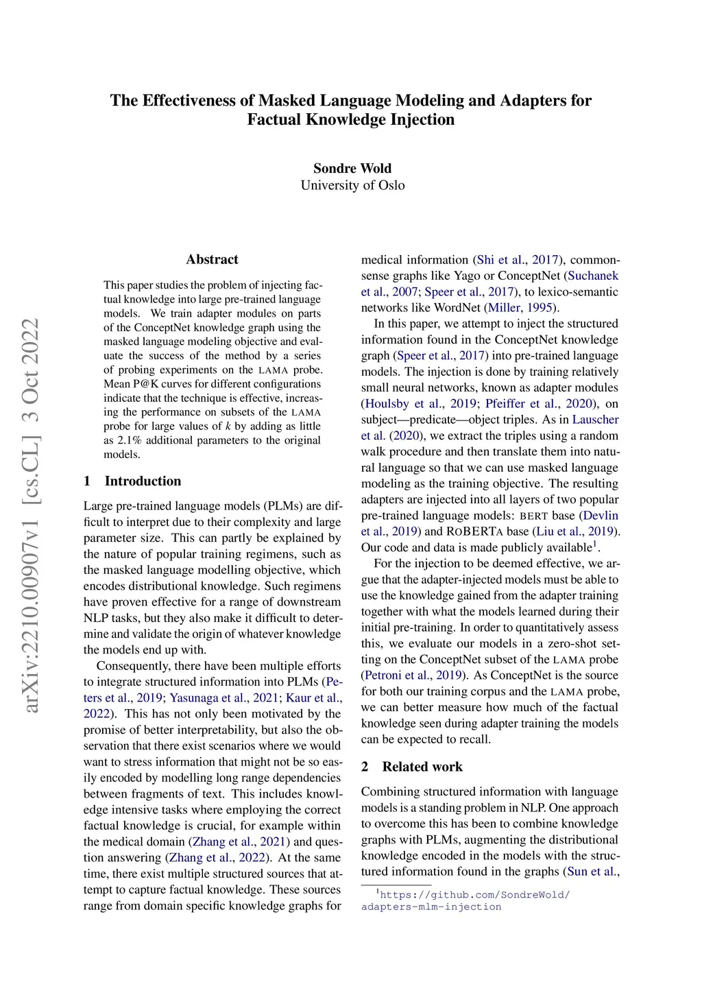 The Effectiveness of Masked Language Modeling and Adapters for Factual