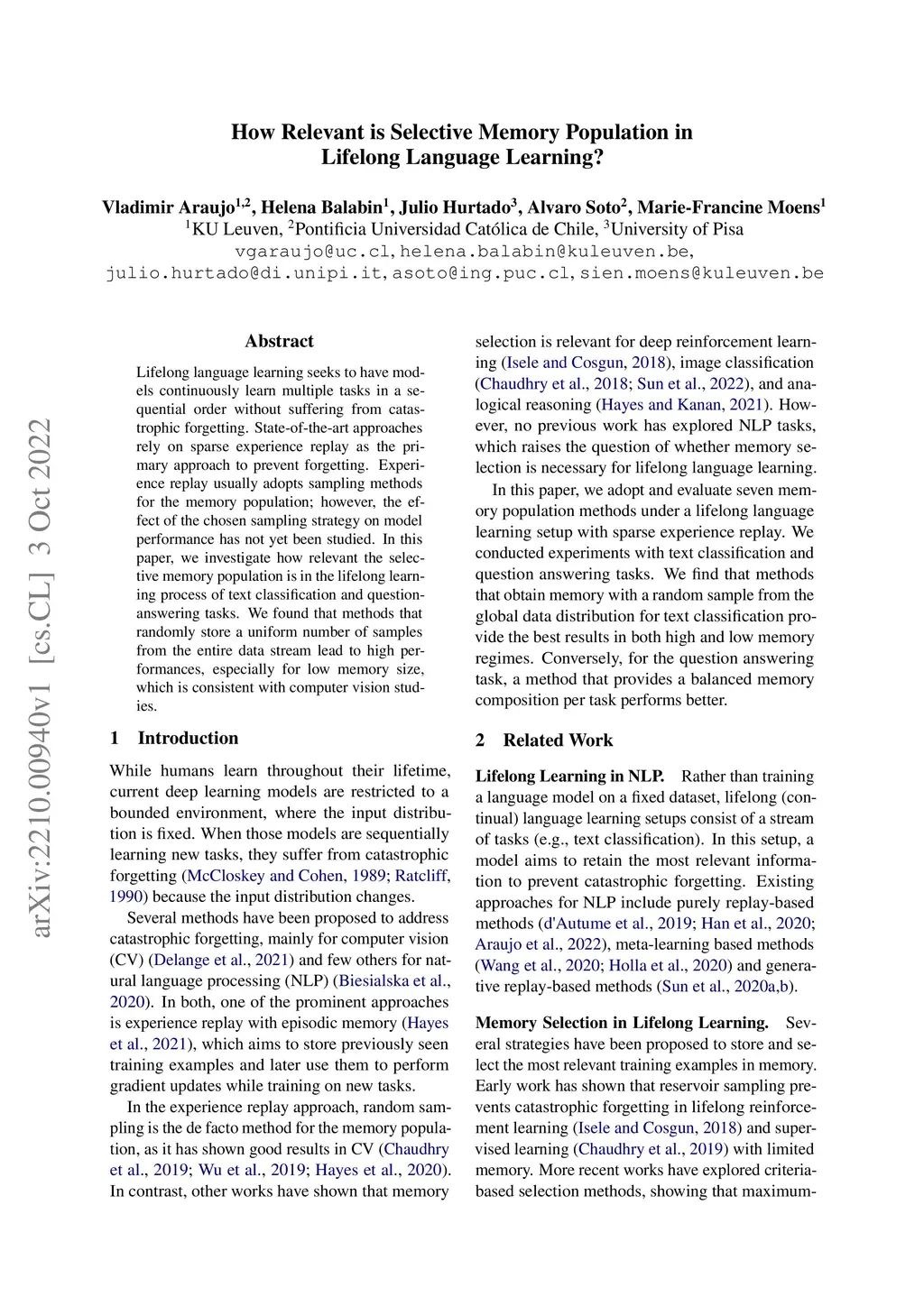 How Relevant is Selective Memory Population in Lifelong Language