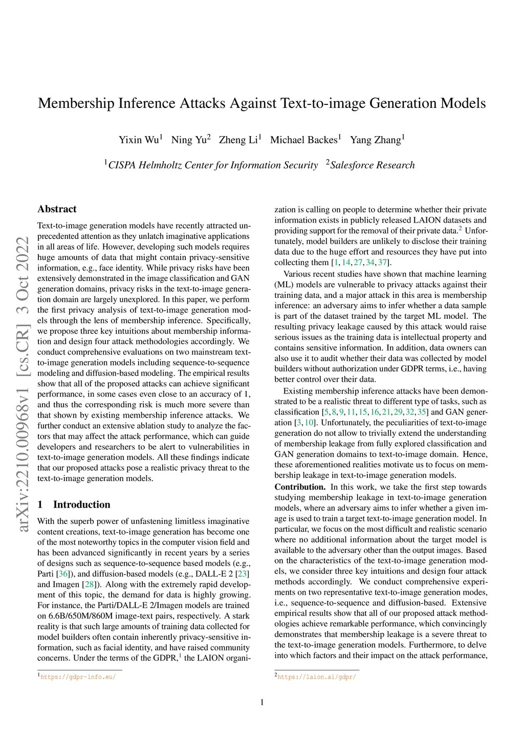 Text-to-image generation models have recently attracted unprecedented attention as they unlatch imaginative applications in all areas of life. However, developing such models requires huge amounts of data that might contain privacy-sensitive information, e.g., face identity. While privacy risks have been extensively demonstrated in the image classification and GAN generation domains, privacy risks in the text-to-image generation domain are largely unexplored. In this paper, we perform the first privacy analysis of text-to-image generation models through the lens of membership inference. Specifically, we propose three key intuitions about membership information and design four attack methodologies accordingly. We conduct comprehensive evaluations on two mainstream text-to-image generation models including sequence-to-sequence modeling and diffusion-based modeling. The empirical results show that all of the proposed attacks can achieve significant performance, in some cases even close to an accuracy of 1, and thus the corresponding risk is much more severe than that shown by existing membership inference attacks. We further conduct an extensive ablation study to analyze the factors that may affect the attack performance, which can guide developers and researchers to be alert to vulnerabilities in text-to-image generation models. All these findings indicate that our proposed attacks pose a realistic privacy threat to the text-to-image generation models.
