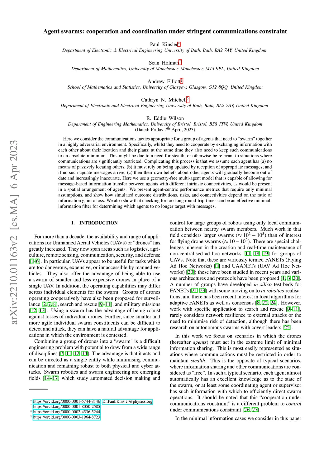 Here we consider the communications tactics appropriate for a group of agents that need to "swarm" together in a highly adversarial environment. Specfically, whilst they need to cooperate by exchanging information with each other about their location and their plans; at the same time they also need to keep such communications to an absolute minimum. This might be due to a need for stealth, or otherwise be relevant to situations where communications are signficantly restricted. Complicating this process is that we assume each agent has (a) no means of passively locating others, (b) it must rely on being updated by reception of appropriate messages; and if no such update messages arrive, (c) then their own beliefs about other agents will gradually become out of date and increasingly inaccurate. Here we use a geometry-free multi-agent model that is capable of allowing for message-based information transfer between agents with different intrinsic connectivities, as would be present in a spatial arrangement of agents. We present agent-centric performance metrics that require only minimal assumptions, and show how simulated outcome distributions, risks, and connectivities depend on the ratio of information gain to loss. We also show that checking for too-long round-trip times can be an effective minimal-information filter for determining which agents to no longer target with messages.